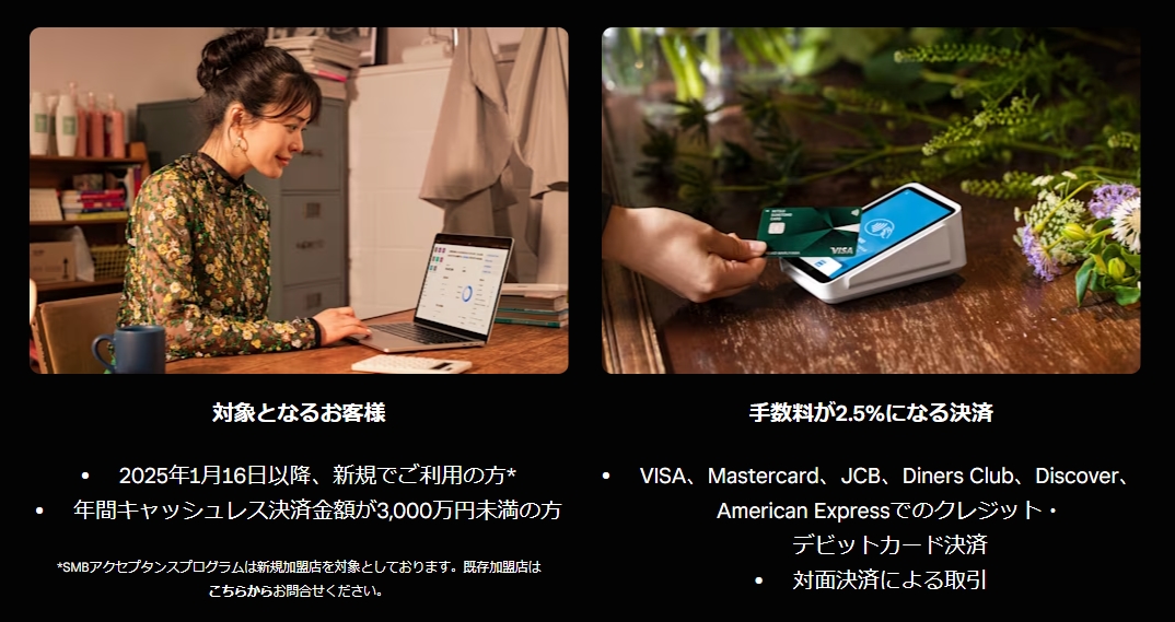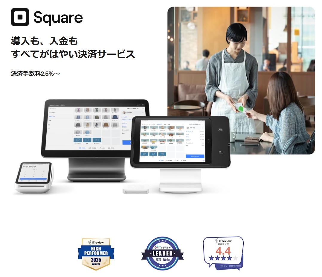 Squareは、「導入が簡単」「コストがかからない」「売上も早く入金される」という、キャッシュレス決済において理想的なサービスです。
