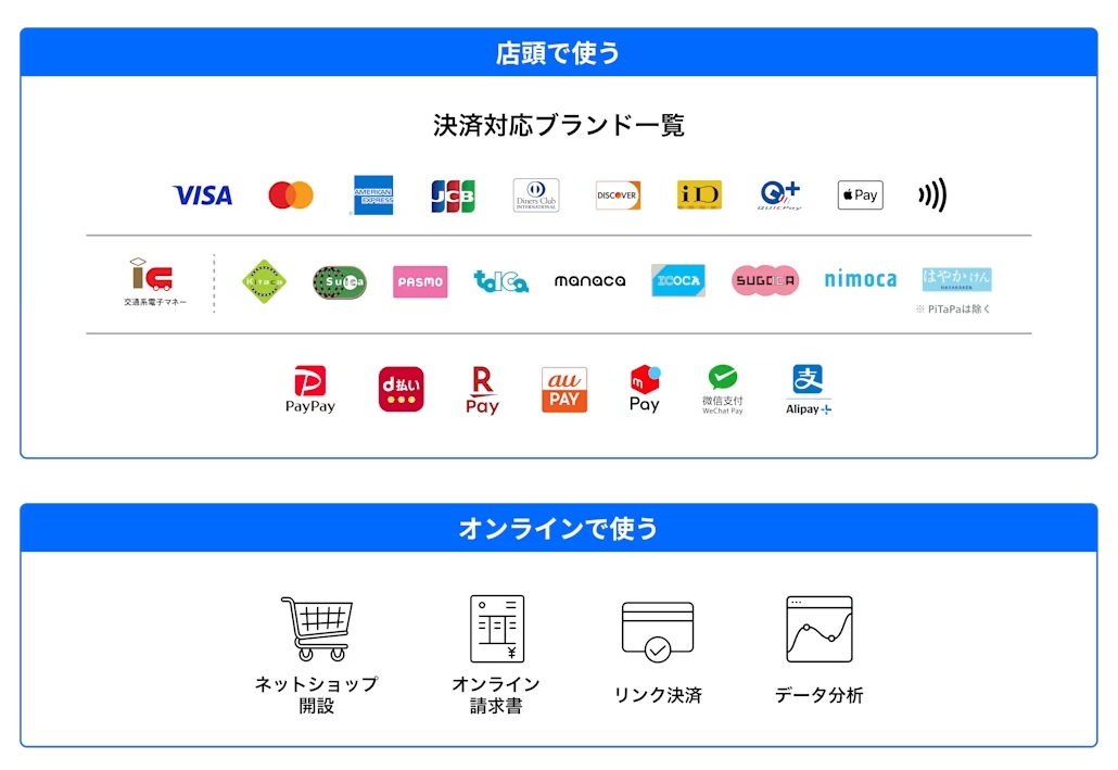 Squareは以下のような決済方法に幅広く対応しています: